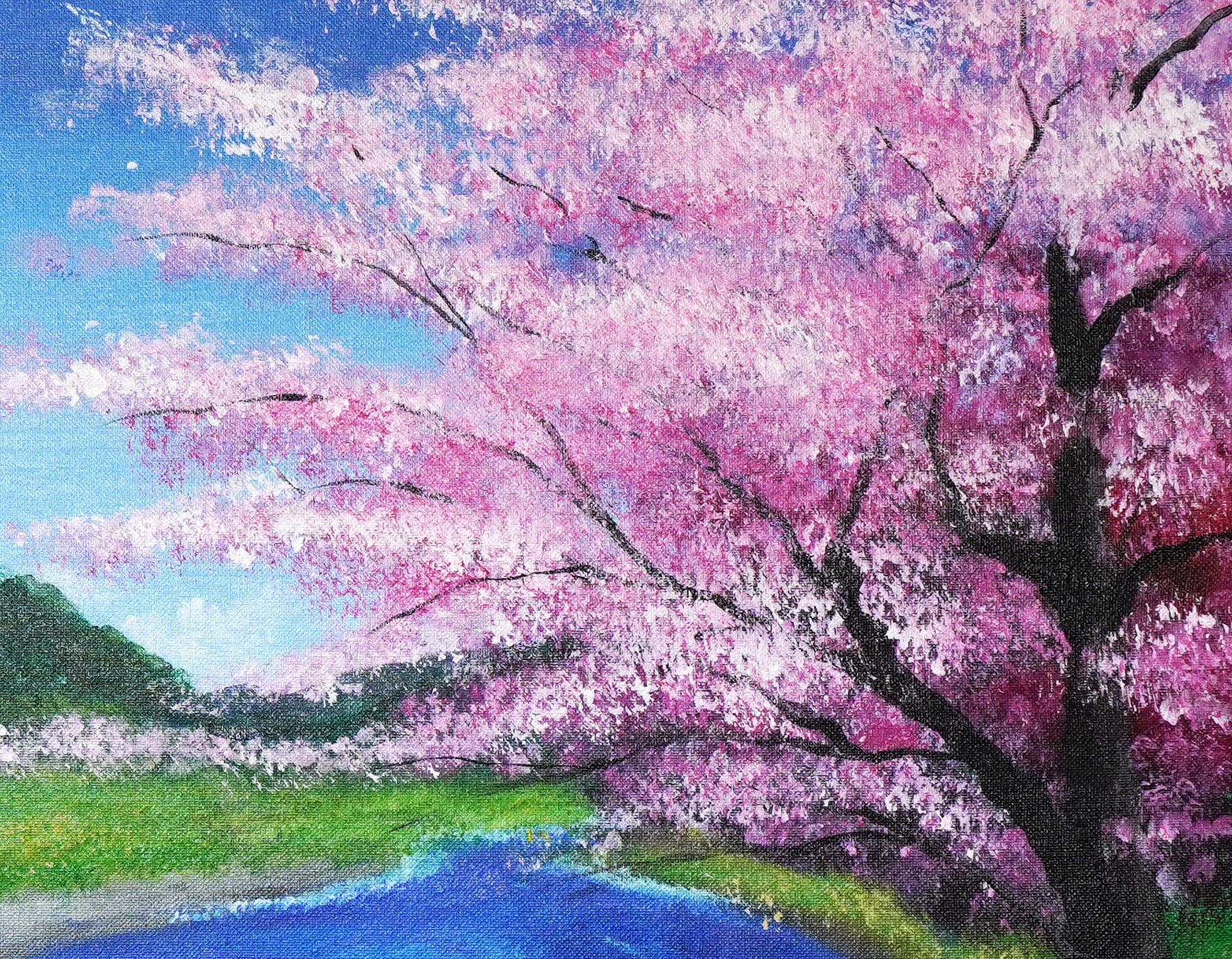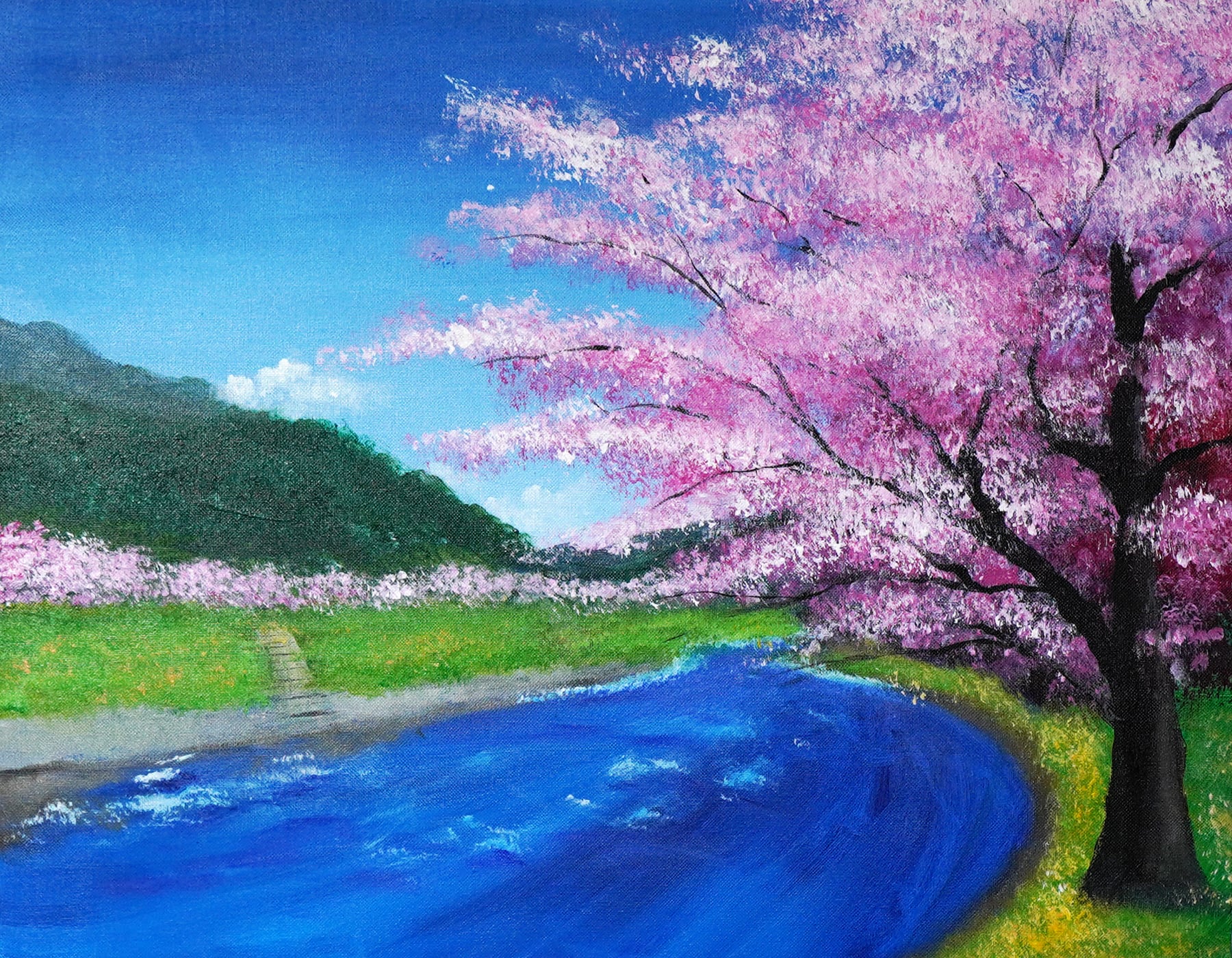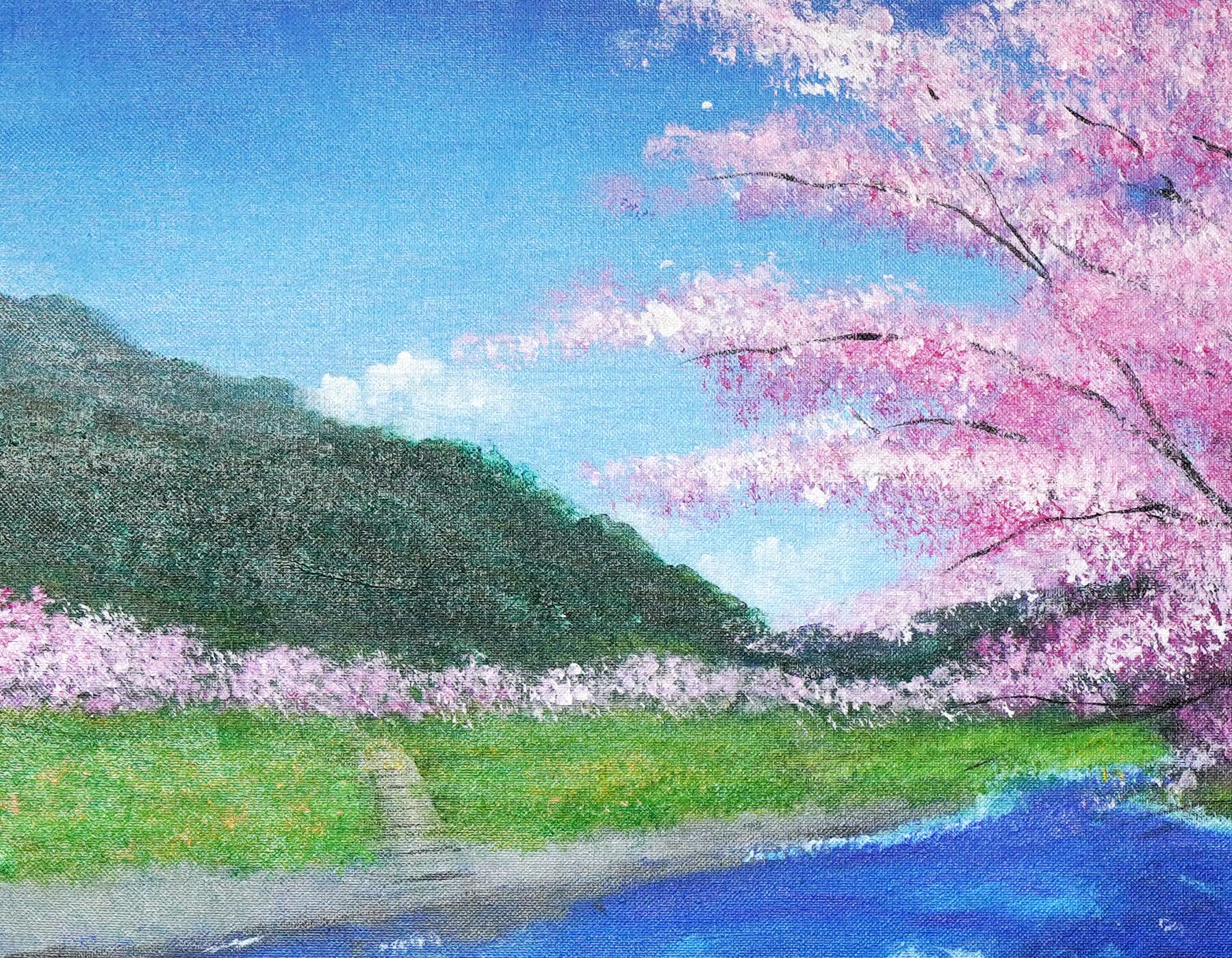 ・作品名:桜と川の風景